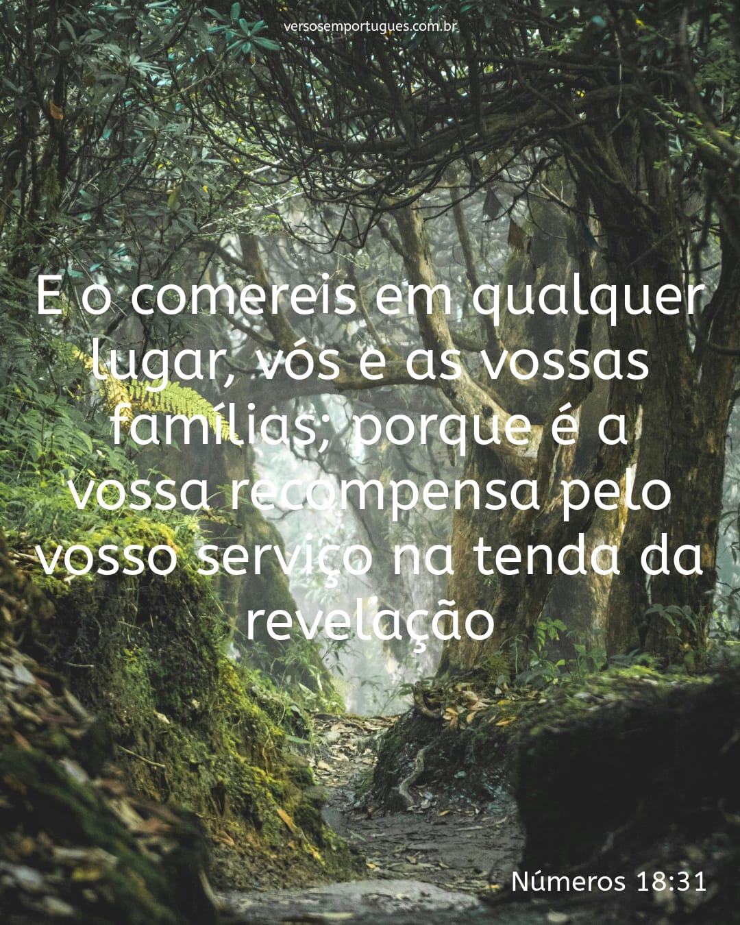E o comereis em qualquer lugar, vós e as vossas famílias; porque é a vossa recompensa pelo vosso serviço na tenda da revelação.