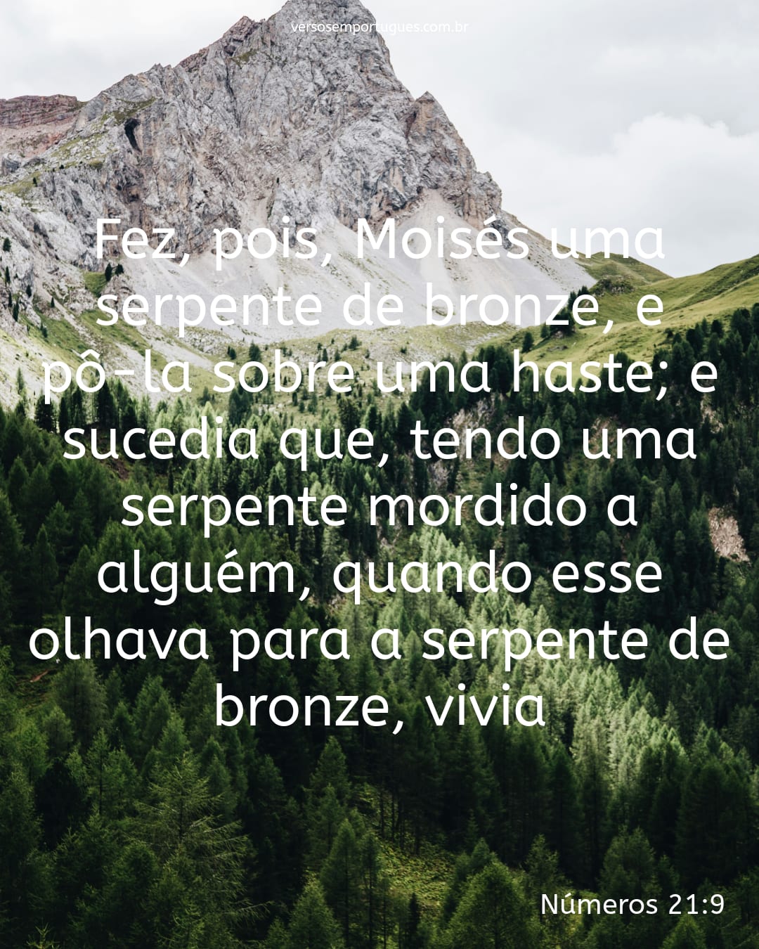 Então disse o Senhor a Moisés: Faze uma serpente de bronze, e põe-na sobre uma haste; e será que todo mordido que olhar para ela viverá.