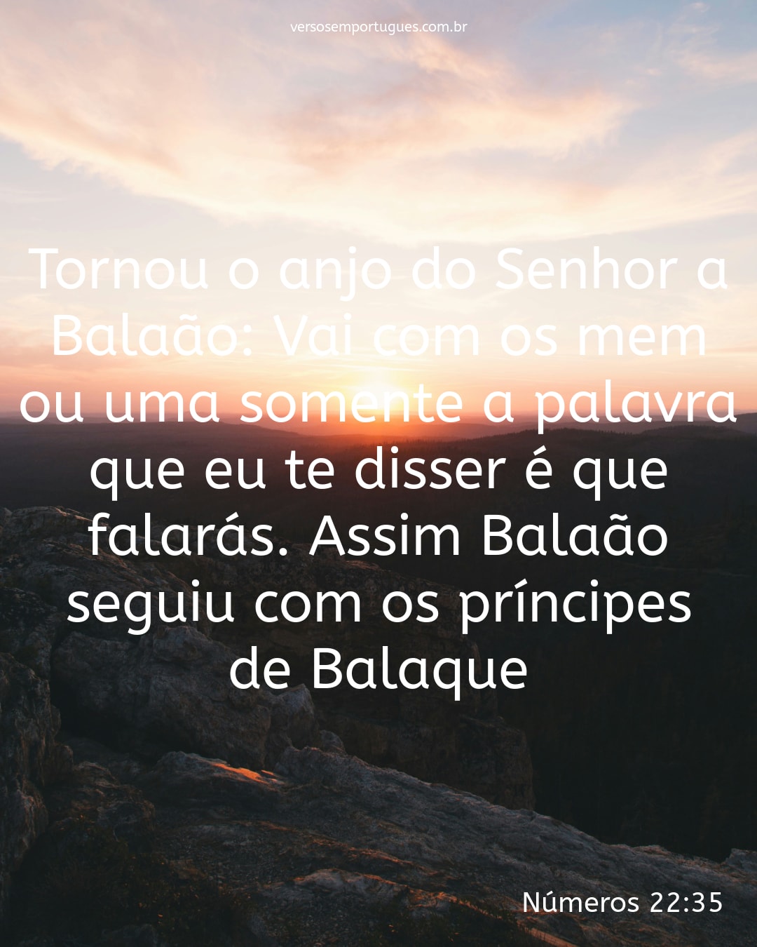 Tornou o anjo do Senhor a Balaão: Vai com os mem, ou uma somente a palavra que eu te disser é que falarás. Assim Balaão seguiu com os príncipes de Balaque:
