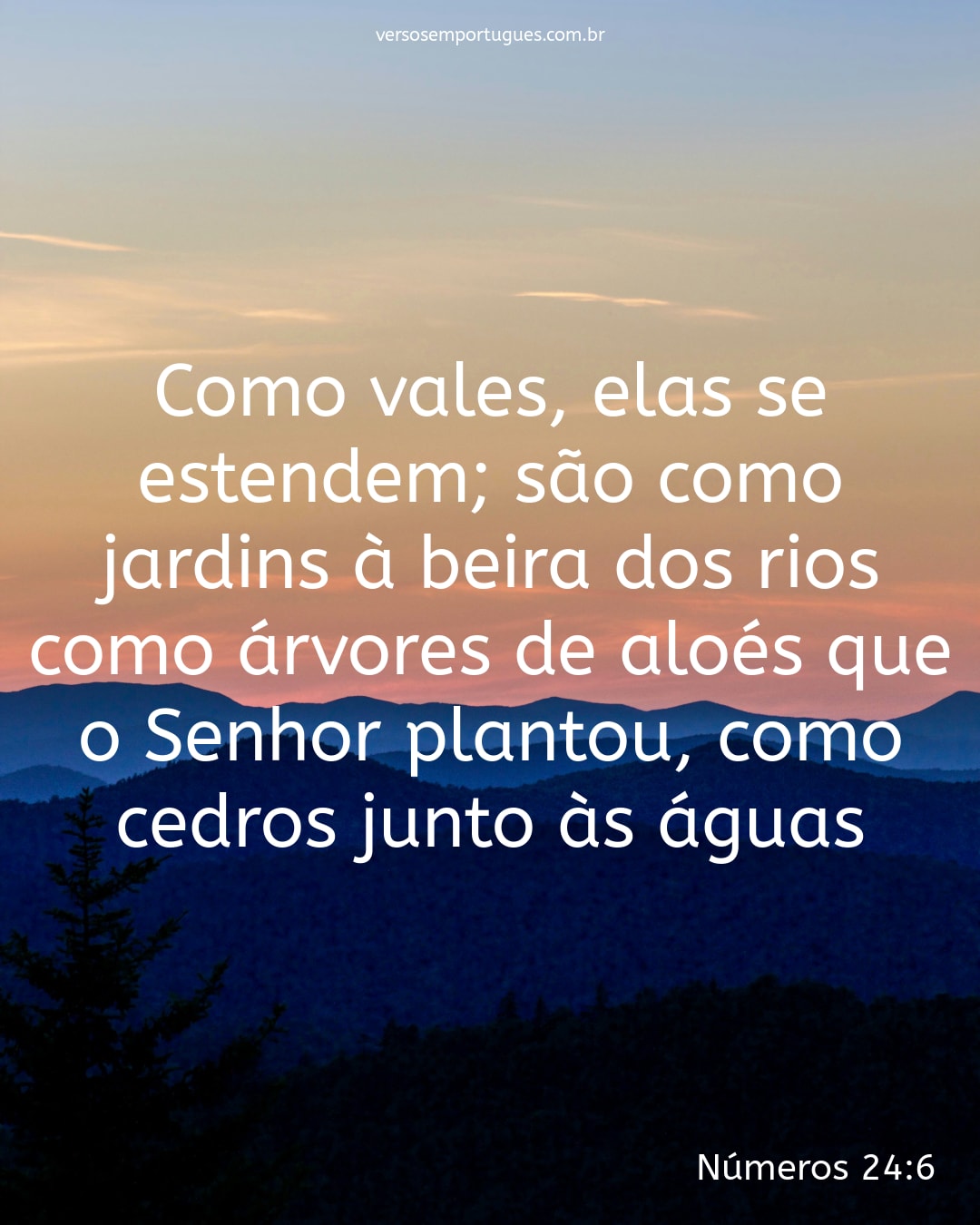 Como vales, elas se estendem; são como jardins à beira dos rios, como árvores de aloés que o Senhor plantou, como cedros junto às águas.