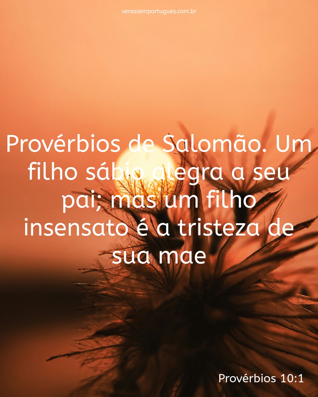 Provérbios de Salomão. Um filho sábio alegra a seu pai; mas um filho insensato é a tristeza de sua mae.