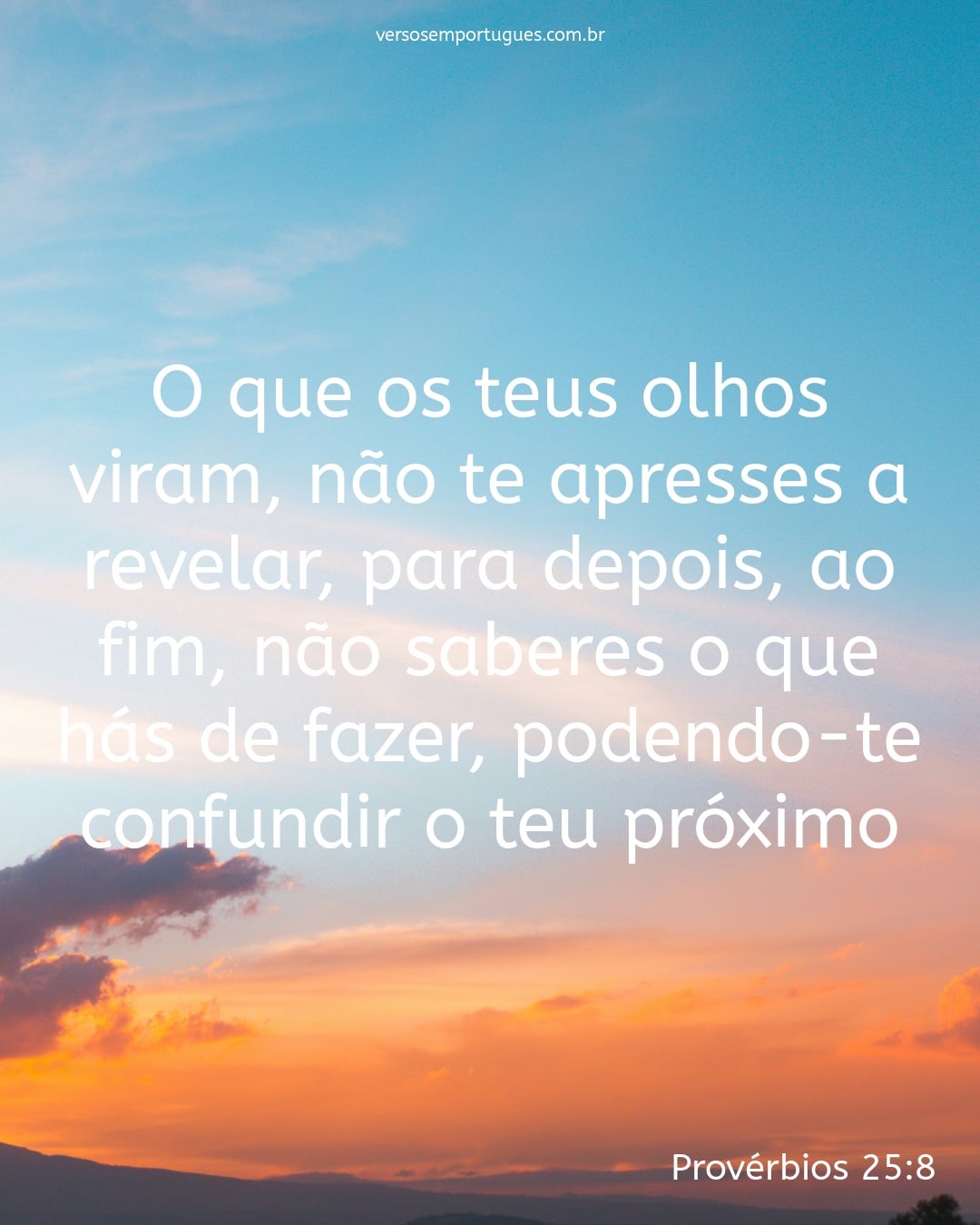 O que os teus olhos viram, não te apresses a revelar, para depois, ao fim, não saberes o que hás de fazer, podendo-te confundir o teu próximo.