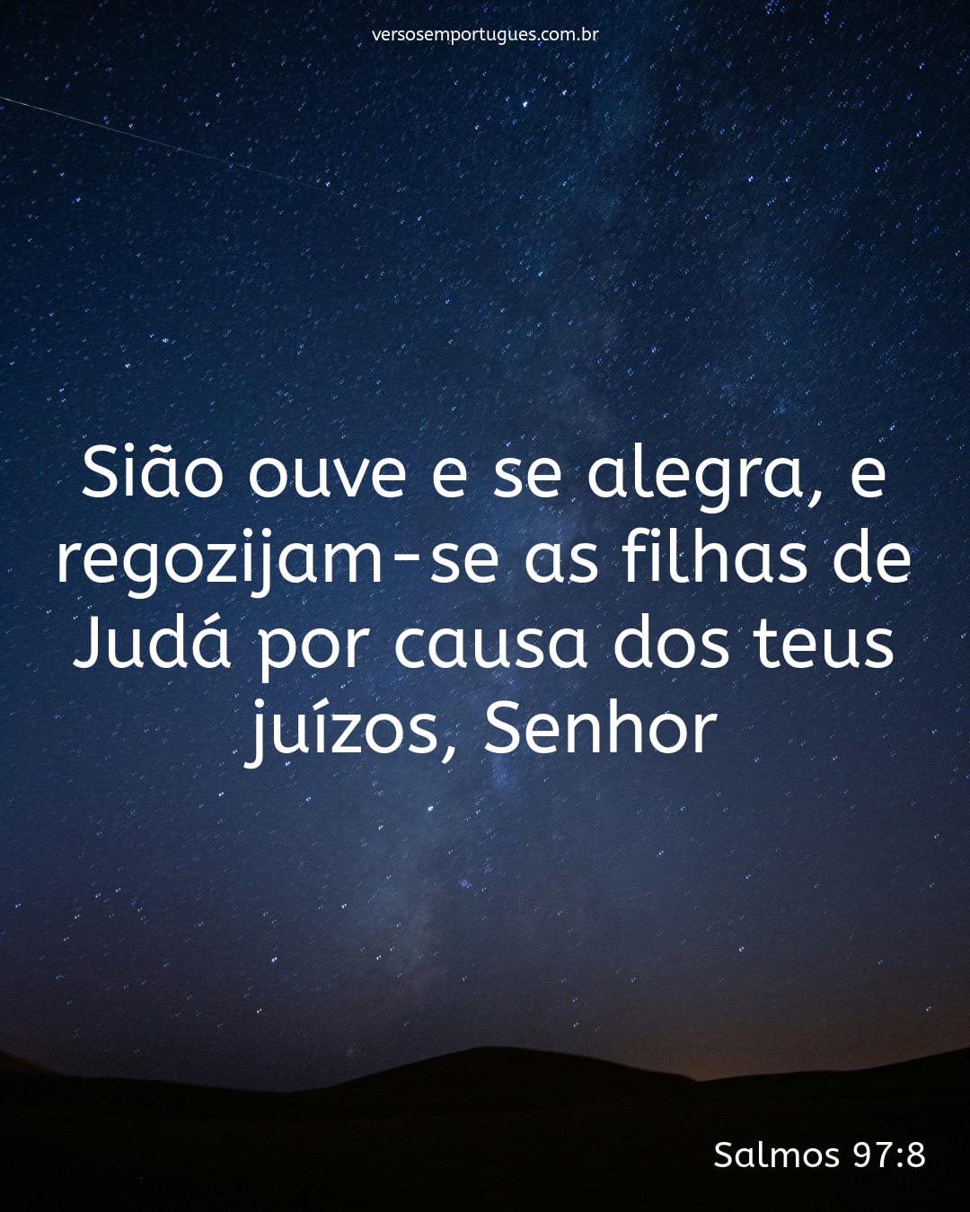 Sião ouve e se alegra, e regozijam-se as filhas de Judá por causa dos teus juízos, Senhor.