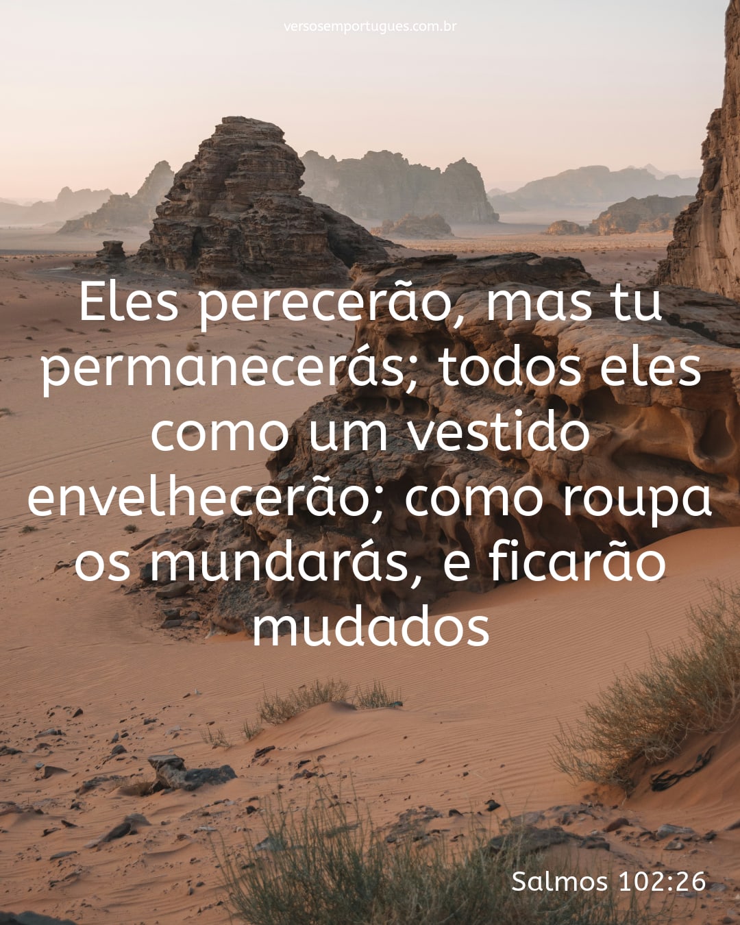 Eles perecerão, mas tu permanecerás; todos eles, como um vestido, envelhecerão; como roupa os mundarás, e ficarão mudados.