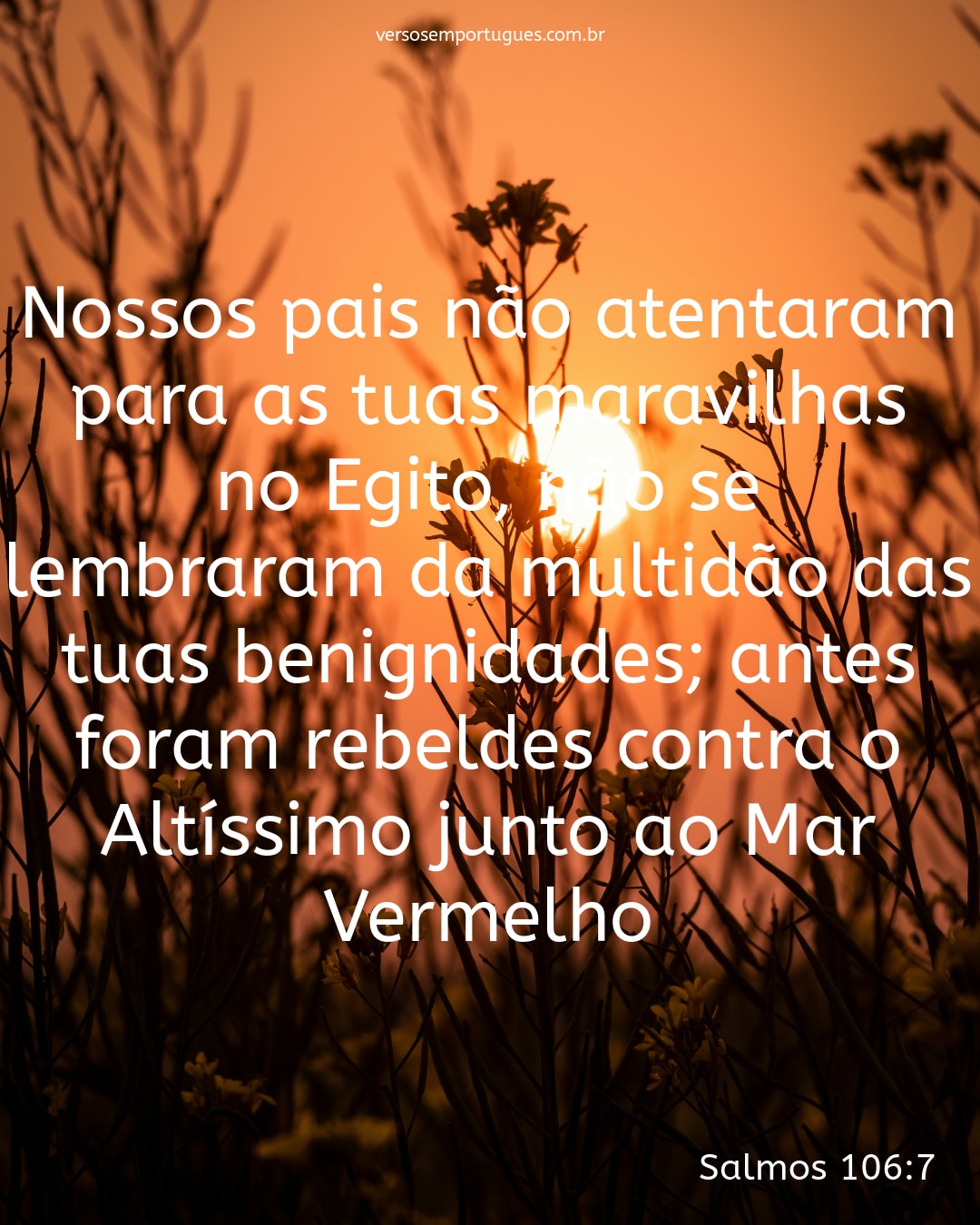 Nossos pais não atentaram para as tuas maravilhas no Egito, não se lembraram da multidão das tuas benignidades; antes foram rebeldes contra o Altíssimo junto ao Mar Vermelho.