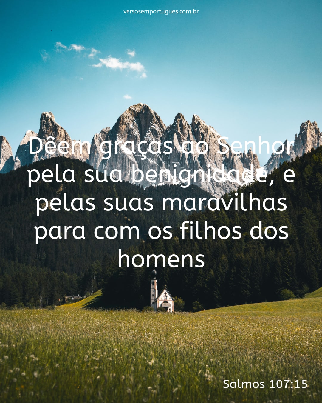 Dêem graças ao Senhor pela sua benignidade, e pelas suas maravilhas para com os filhos dos homens!