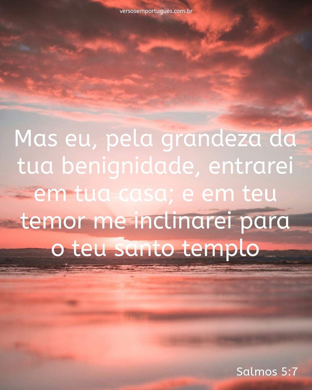 Mas eu, pela grandeza da tua benignidade, entrarei em tua casa; e em teu temor me inclinarei para o teu santo templo.