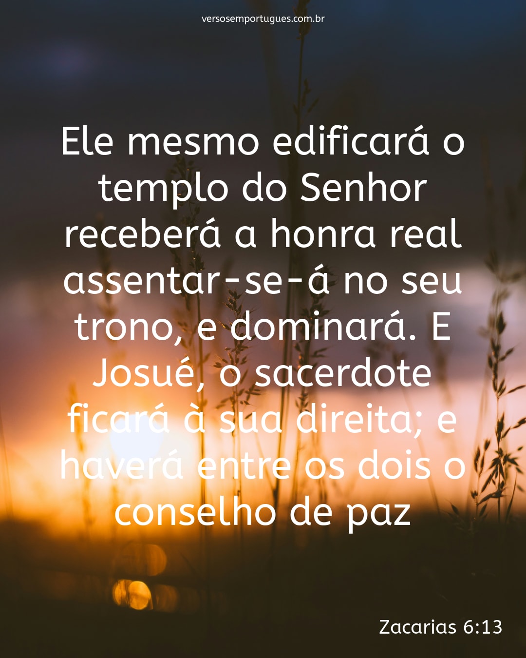 Ele mesmo edificará o templo do Senhor; receberá a honra real, assentar-se-á no seu trono, e dominará. E Josué, o sacerdote, ficará à sua direita; e haverá entre os dois o conselho de paz.
