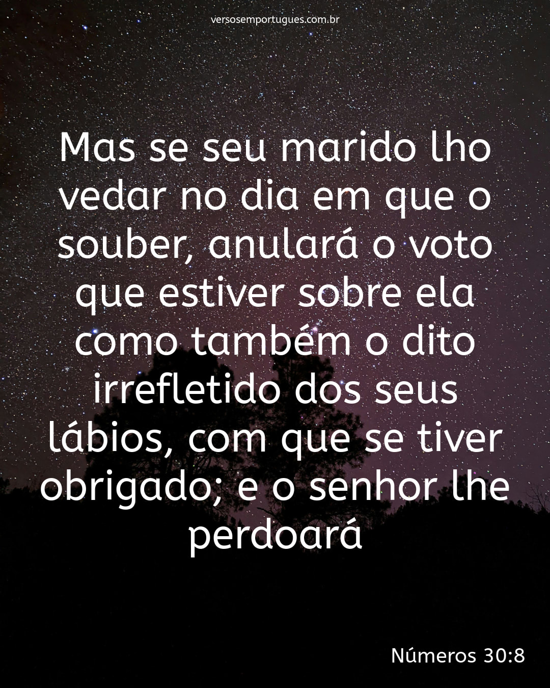 Mas se seu marido lho vedar no dia em que o souber, anulará o voto que estiver sobre ela, como também o dito irrefletido dos seus lábios, com que se tiver obrigado; e o senhor lhe perdoará.